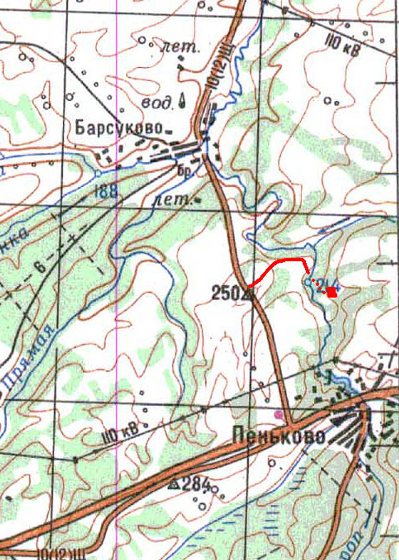После поворота на Барсуково проехать 2-3 км и вправо через поле и вдоль поля по дороге до речки Укроп.