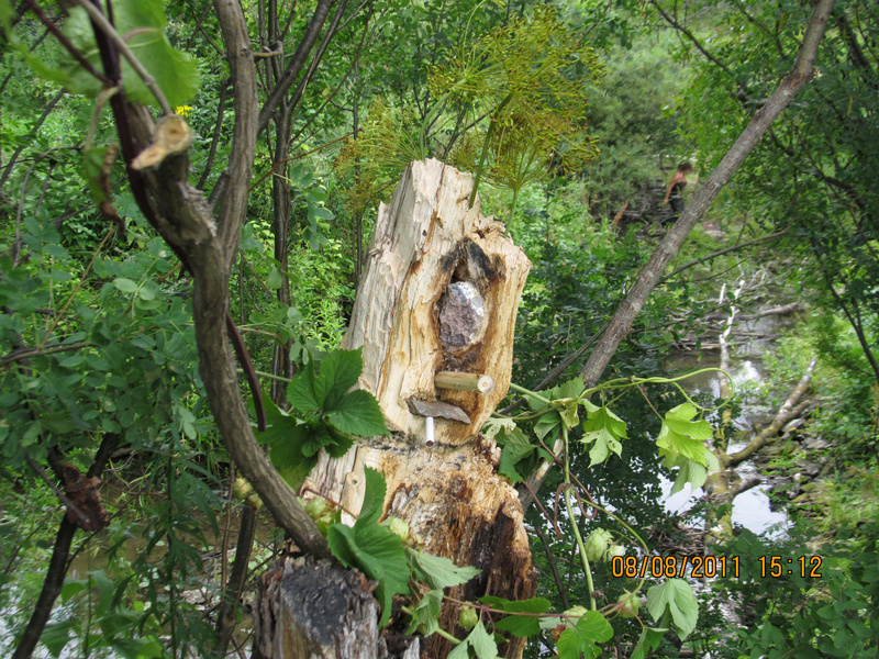 Потом перейти на другой берег и пройти еще метров 200-300 вдоль скальных выступов.