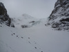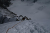Мы шли по снегу, просто вбивая кошки в связке (или одну веревку повешали...не помню уже), а может быть так, что 3/4 льда придется провешивать (веревки 4-е, наверное).
