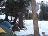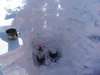 . На обратно пути прошли через мульду образованную ледником и склоном Караташа, возле самых скал (в прошлом году ее кажется и не было вроде) с почти вертикальной ледовой стенкой по правой стороне, поражает структура льда очень жесткого и перемезшего с зимы, наверно и бур не вкрутить. В штурмовой лагерь вернулись в районе 2-х часов, уже стояла настоящая жара, и народ принялся за солнечные ванны и прочие шалости типа лепки снежных баб, чревоугодия (без соли и сахара конечно) и точение ляс. «Радио юмор ФМ» не утихало до ночи вместе с хохотом из соседней палатки. Под занавес Тезка зачем то спросил чему равна дивергенция по замкнутому контуру, и народ засыпал, загруженный мыслями о решении этого вселенского вопроса. В этот день на Караташ уже шло много народу и проложенная нами узкая тропа приняла вид пробитой слоновьим стадом дороги.все ашипки и очепятки зделаны намеряно