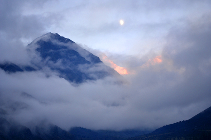 Чистые и счастливые мы одели последнюю условно чистую одежду, выбрали ресторанчик, знакомый и не слишком дорогой. Народ отъелся, сверху сдобрил мороженым, и счастливые , сытые, чистые и отдохнувшие мы отправились гулять по ночной Белокурихе, поскольку спать не хотелось пока совсем. После 12 ночи в Белокурихе вырубают часть освещения, и остается основное. Жаль. Но мы все равно дотопали от «Баваренка» через «Центросоюз» и «Аврору» до почти «Сибири», потом заглянули на вновь отстроенную территорию санатория России с причудливыми подсветками, растениями, качелями и избушками. Ходили тучки. Погромыхивало. Надо бы возвращаться к машинам. Я намекнула Косте, что может поискать какое нить размещение , что то не нравится мне перспектива погодная. Но в пол-первого ночи, в Белокурихе врят ли, нас расселят всемером в одной комнате, это вам не Шебалино, а мы поиздержались и с учетом Белокурихинских цен, 3 номера за несколько часов сна с оплатой за сутки уже был перебор. Двинули на гору, уже по пути пошел дождь, переходящий в ливень. Поднялись на гору, спустились в ямку, опять подъем в лесочек. Костя ехал первым, я тоже закарабкалась.
