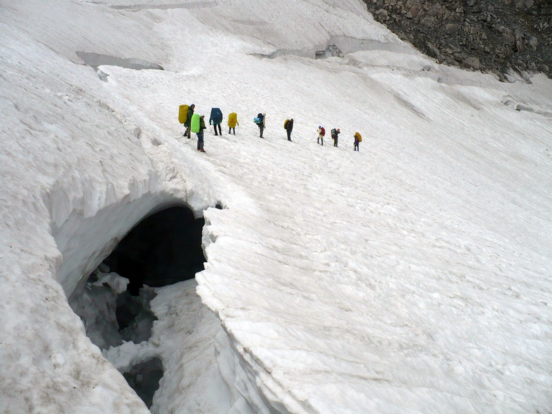 Раньше пер Абиак Зап нормально проходился в связке. через трещину на склоне были хорошие мосты, да и по очертаниям она просто перешагивалась.