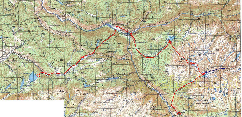 Стартуем из Барнаула и возвращаемся в Барнаул,на всё про всё 18 дней,из них 12 на пеший маршрут,4 дня на транспортную заброску/выброску и 2 орг.дня,на приезд/отъезд в /из Барнаула.