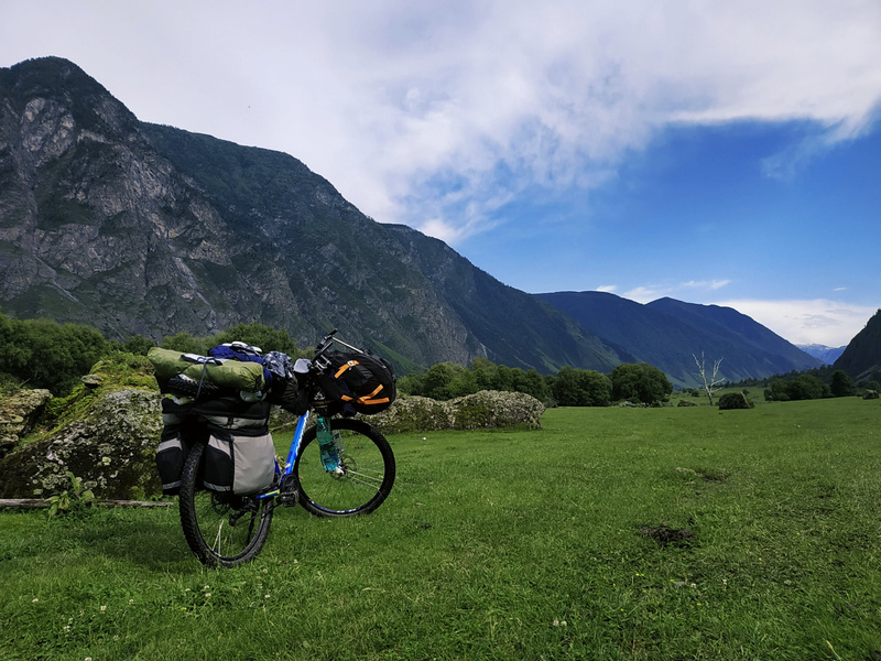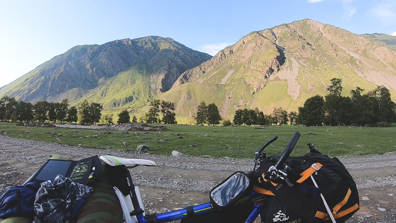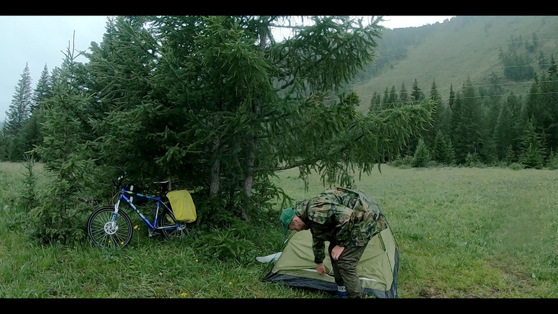 Потеряв время на посте при въезде в Республику Алтай (коронавирус всё-таки), я сел на велосипед в Майме только в 17-00. До Телецкого озера (это 160км пути) я доехал к обеду третьего дня. За эти дни я только и делал, что калибровал велосипед и снаряжение, исправлял мелкие поломки, снимал с себя клещей, перекладывал вещи с рюкзака на руле (который регулярно терся и протирался о покрышку и мне приходилось его подтягивать) в велоштаны и делал попытки что-то снимать и говорить на камеру (тоже впервые). И несмотря на попытку наверстать упущенное время (во второй день проехал около 85 км пострадав на перевальчиках), я так и не успел на паром, который отходил на Юг Телецкого озера в первой половине третьего дня моего путешествия. Не успел всего на 2-3 часа. Попытался уплыть на лодке, объехал весь берег, но было уже слишком поздно для дальнего плавания на Юг озера, поэтому мне оставалось только смириться, что на сегодня мой путь окончен. Благо у меня был один день на путешествие в запасе.