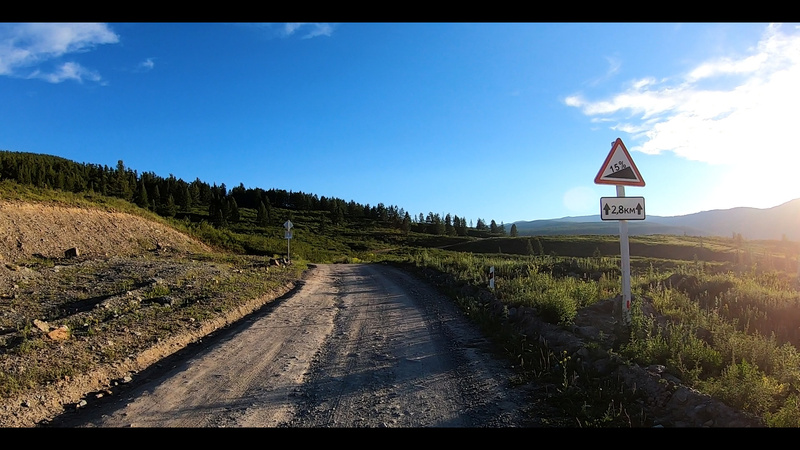 Время шло, я всё ехал и снимал. Позже каменистая дорога сменилась более покладистой и я поехал быстрее. Ближе к 8 вечера я стал упорно искать ночлег, но, как на зло, вокруг то не было ровных мест, то они были, но слишком открытые и просматриваемые, то вокруг не было деревьев, чтобы лучше укрыть меня от дождя, чьих-то глаз и дать костер. А костер мне был очень нужен, потому что мой газ стремительно заканчивался, и вряд ли я мог его пополнить в следующие 100-150 километров (у меня накручивающаяся горелка, нестандартная, как и чертово крепление под седло!).