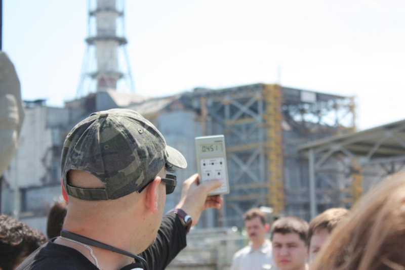 На фото я вижу дозиметр, показывающий мощность излучения (гамма - конкретики ради) в 1,41 микрозиверта в час. То есть если простоять прямо там на площади