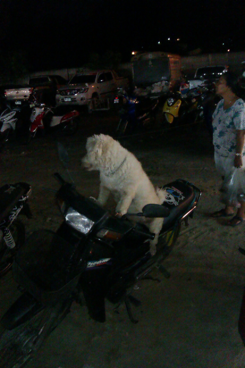 Собака на байке.сорри за качество фото -ночью и на телефон.