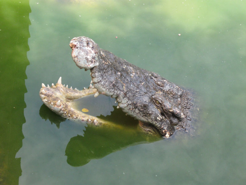 она кусается только на суше или в воде тож может попробовать челвоека на вкус?