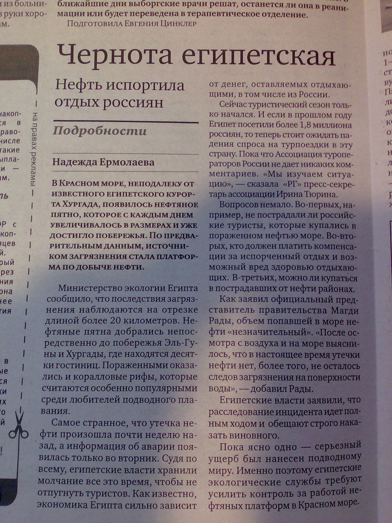 Ответ на сообщение Re: Кто видел нефтяное пятно в Хургаде? пользователя Delfin