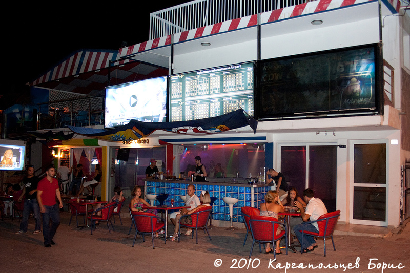На улицах работает очень много зазывал - они предлагают флайеры со скидками в клубе, бесплатным входом, суперпредложениями здесь-и-сейчас, бесплатными напитками и прочей заманухой. Замануха она и есть замануха. Если вам дали флаер, положим, с бесплатным коктейлем, то это будет очень бодяжный коктейль. На такую халяву ведётся очень много русских, такие бары можно называть "русскими". Многие бары работают по национальному признаку - например, ориентированы на англичан - русского там минимум, некоторые чисто русские и иностранцу там будет тяжело. Такие же есть шведские и датские. Но никто не запрещает туда заглянуть - просто вы будете не в теме. В не ориентированных на русских барах коктейли и алкоголь не разбавляют, за 4-5? получаешь именно то, что должно быть. Поэтому советую посетить Tommy's Pub, что находится на пересечении Nissi Road и Makarios Avenue - там устраиваются довольно интересные представления, народу всегда очень много, успейте занять места. Также порекомендую Seahorse bar (находится на пересечении авеню и дороги, идущей от Санкта Напы, Нестора и т.д.) - хорошие коктейли, хорошее караоке, позитивная публика. Есть неплохой бар Jasmin - находится почти в самом конце Авеню, после фонтанов, за поворотом налево - танцы на барной стойке, файершоу, аниматоры и т.д. Есть русский бар Red Square - неплохое заведение, много русских (достоинство это или недостаток - решать вам), оформлен в стиле CССР, напитки бодяжат жутко, скорее привлекателен из-за своей стилистики и тёлочек, которых там в хорошую ночь весьма много. Многие будут советовать бар Crazy Frog - лично моё мнение - не стоит туда ходить - ничем не выделяется, кроме больших коктейлей и большого скопища любителей халявы. Коктейли стоят практически одинаково - 2,5-3?. Поэтому совет - алкоголь там не брать - подслащённая вода с каплей алкоголя вообще ничего не должна стоить ;-)