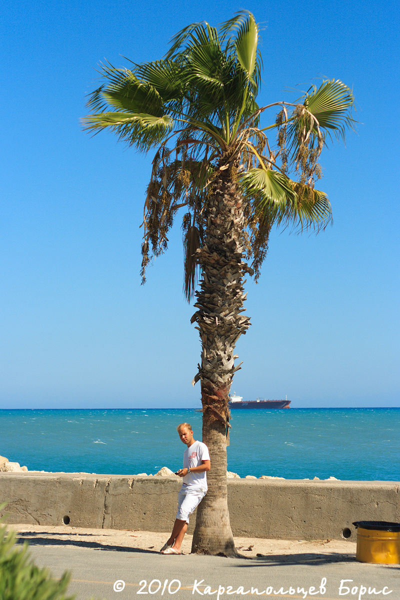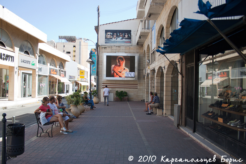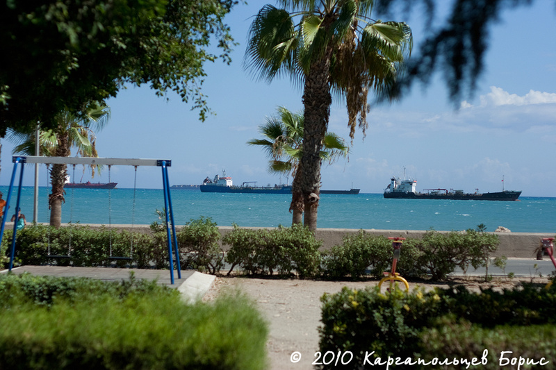 Половина следующего дня была посвящена собственно прогулке по Лимассолу, вдоль по Анексертисиас (Anexartisias road), мимо площади, ещё вдоль Анексертисиас и прямо до самой набережной. На этой улице расположено много местных магазинов - от торговых центров и до фирменных магазинов Valentino, Guess, Stradivarius, La Coste, Terranova, ESPRIT и подобных. Всё это уже видели ;-). Во многих магазинах как Лимассола, так и Айя Напы найдётся хотя бы один человек, кто говорит по-русски, так что наши соотечественники, страдающие от языкового барьера, смогут объясняться без особых проблем. По широте ассортимента в этих магазинах - безусловно - новейшие коллекции. До нас дойдут через полгода-год. Вдоволь нагулявшись по магазинам, мы дошли до набережной Лимассола. Мне она очень напомнила набережную в Майями - пальмовая аллея, пешеходные дорожки, статуи и прочие скульптуры. Отдельные дорожки для велосипедистов/роллеров/мотобайкеров и прочих. Вид на море открывается, конечно, шикарный - в самой дали виднеются грузовые суда, проплывающие мимо, что оживляет пейзаж. Мне показалось, что в Лимассоле море выглядит как-то чище, чем в Айя Напе - оно гораздо голубее и живее по цвету. Тем временем, день двигался уже к завершению и пора было отправляться обратно в Айя Напу. Распрощавшись и поблагодарив за гостеприимство нашего товарища, мы созвонились с тем же русским, что нас и привёз в Лимассол. Обратно уехали уже за 60? за борт - домчались тоже быстро.