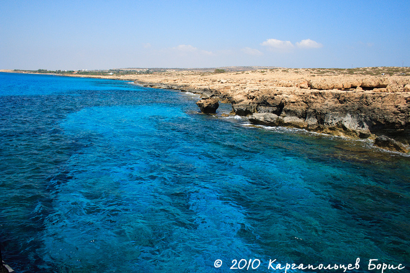 Море от густого сине-зелёного цвета, то прозрачное нежно-голубое, это надо увидеть своими глазами. Имеет свойство изменять свой цвет по мере удаления от берега - на Кипре это особенно ощущается.