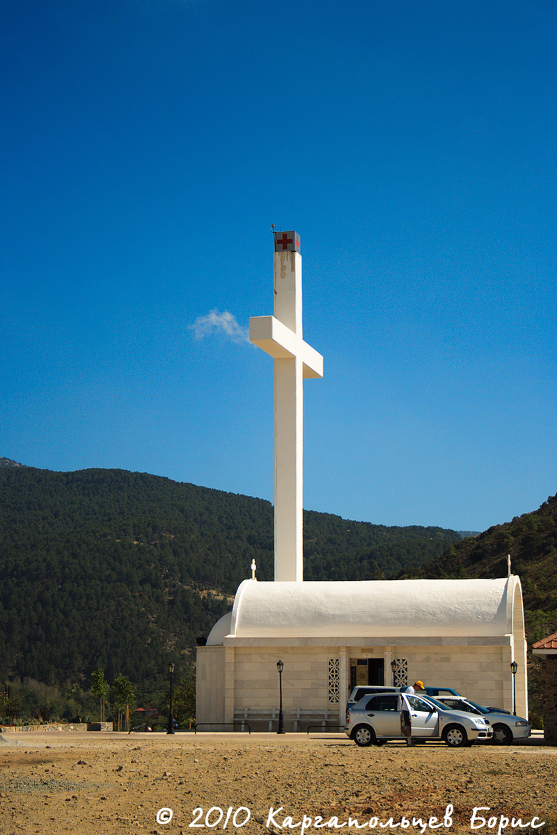 Остановка №2. Продвигаясь всё выше горы по горному серпантину, мы остановились у церквушки, расположенной прямо в горах. Часовенку никто не охраняет, всё довольно культурно. С высоты, где расположена часовенка, открывается прекрасный вид на горы, на равнину и на то, что осталось ниже нас. В горах, несмотря на то, что в целом на Кипре жарко, дует слабый прохладный ветерок, прогуливаться приятно).