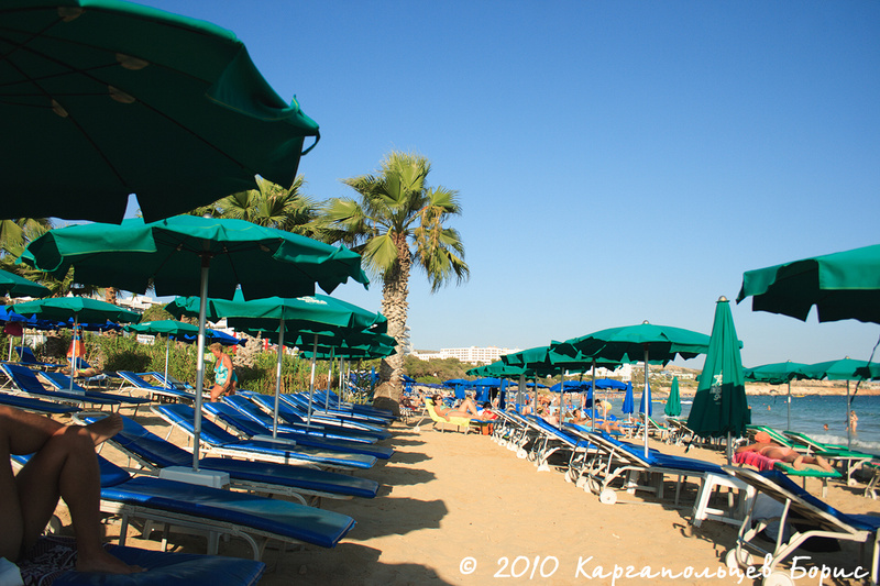 Пляж/бассейн/море. Отель находится на второй линии, идти до полноценного муниципального пляжа максимум 5 минут медленным прогулочным шагом по асфальтовой дорожке. Пляж муниципальный - это означает, что можно загорать бесплатно на траве, либо на той территории, где нет зонтиков и лежаков. Лежаки и зонтики платные - комплект из двух лежаков и зонтика обходится в 5?. Бичбой выдаёт квитанцию, по которой можно весь день ходить загорать. Оставлять полотенца на лежаках здесь не принято - всегда можно найти свободные места. Вообще на Кипре почти нет воровства и преступности, поэтому можно оставлять спокойно вещи и идти купаться в море - никто их не возьмёт.