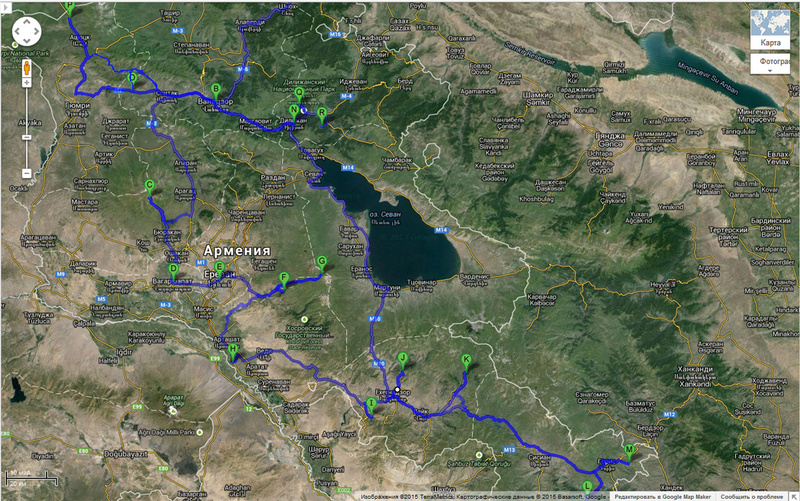 Общая обзорная карта маршрута и обзорная карта по Армении.