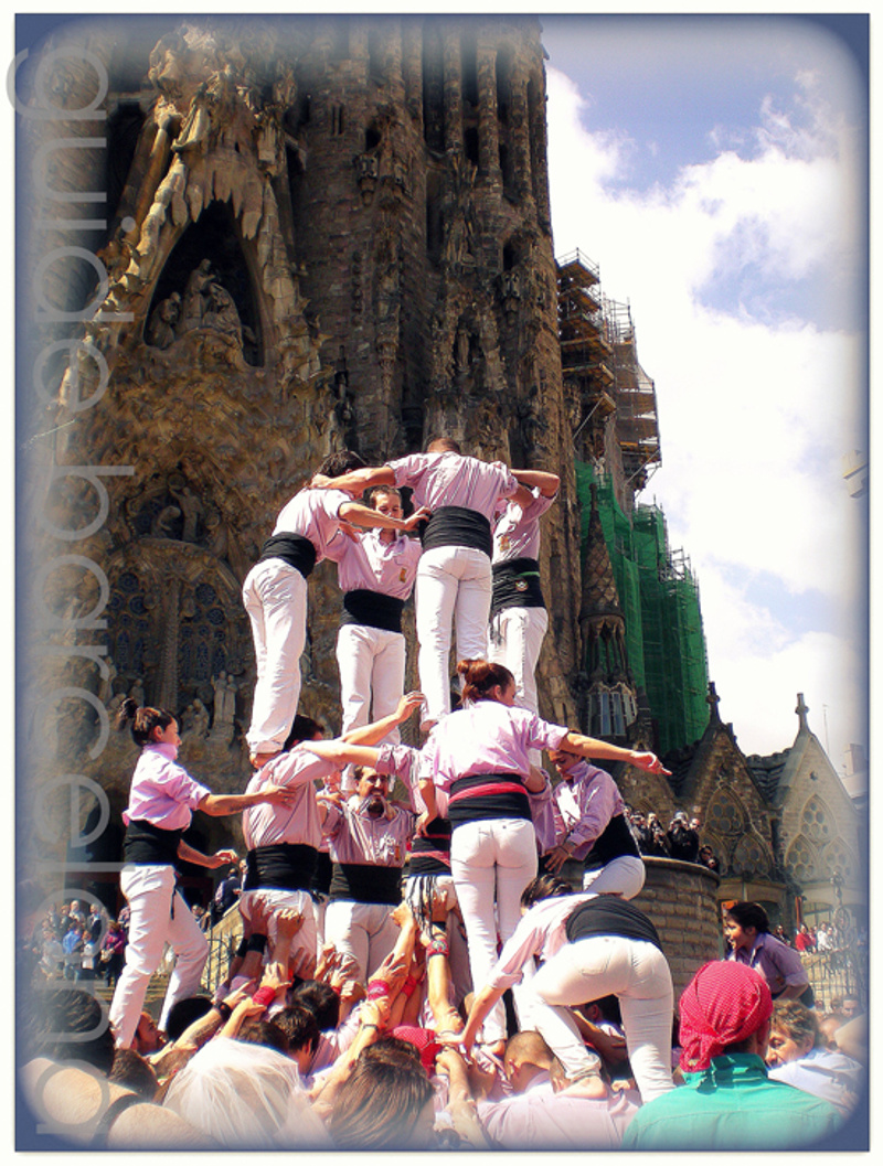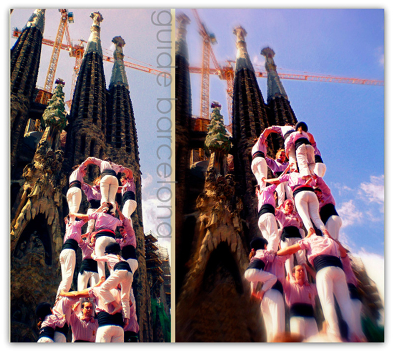 La Sagrada Familia в период праздника Castellers (выстраивания "живых" башен)