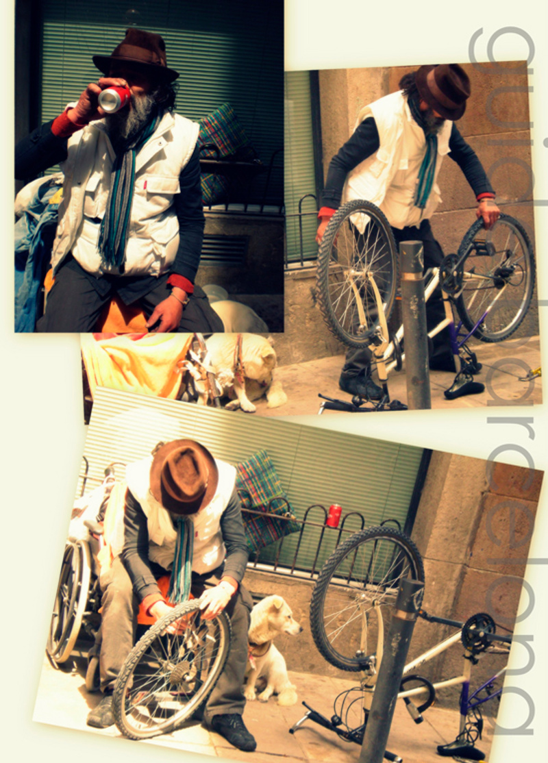 И я им предложил спросить лично его самого об этом. И добавил, что мой колоритный знакомый знает еще больше историй о Старом городе, чем я. Через минуту мы сидели в небольшом баре за ароматным кофе, “приправленным’ чупитой с ромом и замечательными тапасами. Разговор о жизни простого работяги, живущего на улице, но не просящего милостыню, а достойно зарабатывающего своим трудом был кстати. Белый верх и черный низ заулыбался: он перестал нервно хватать телефон и очень заинтересованно слушал простой рассказ простого испанца о вкусе свободы, о его нехитрой работе, о друзьях и проблемах. Но все было без злобы и стенаний, а потому никто никого не напрягал своими неразрешенными проблемами. Еще пару минут и клиент на улице позвал Маэстро (так я его называю за золотые руки и общительность) починить свой велосипед. Ну а мы отправились туда, где можно вкусно покушать. Проблемы и ритм Москвы на пять дней остались в Москве. Улыбка сменила тяжелый взгляд. И на следующий день дресс-код был сломан шортами и рубашкой “пожар в джунглях”, купленной в одном из винтажных магазинов района Барио чинос. Касательно винтажной одежды – в другом рассказе.