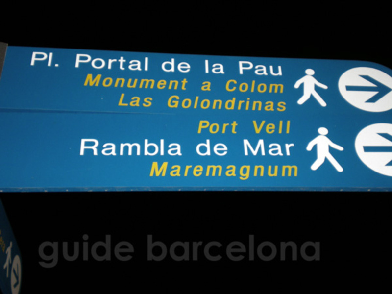 Мы опять на Рамбле (Рамбла дел Мар (Морской Бульвар) ведет к Молу Эспанья со зданиями новой постройки: Маремагнум (большой торговый и развлекательный комплекс), ИМАКС (кинотеатр с системами Imax, Omnimax и 3D) и самый большой в Европе Аквариум), перед нами - величественная колонна - памятник великому открытию - Monument a Colomb -Памятник Христофору Колумбу.