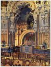 Это создает другое ощущение старинного готического Собора, как бы напоминая тему в красках его ярких витражей.