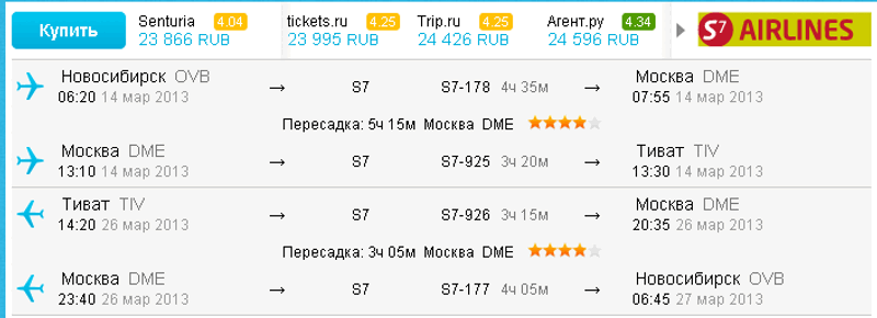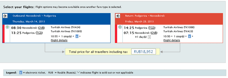перелёты из Новосиба только в Подгорицу или есть в Тиват.