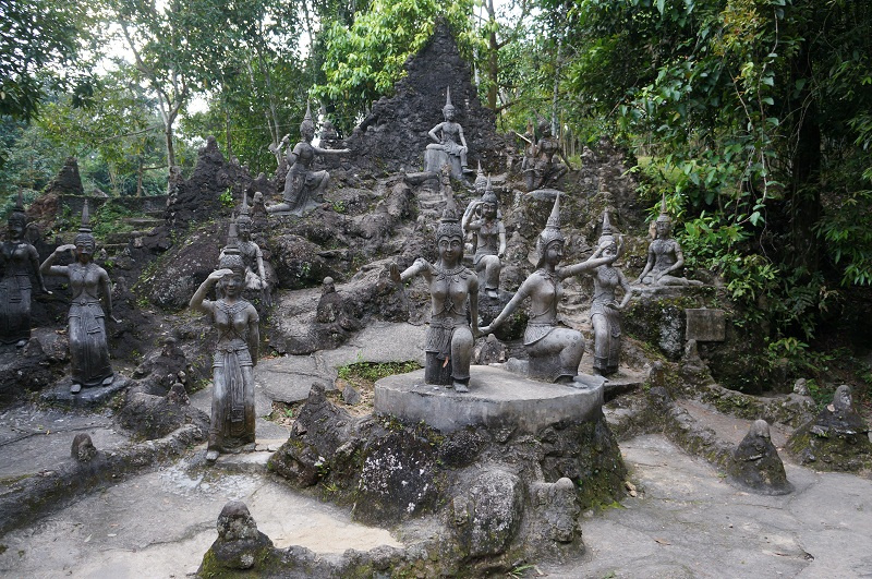 "Магический сад – это различные статуи (Будды, других божеств, животных, людей), высеченные из камня и окруженные тропическим лесом. Данный сад – это творение самуйского фермера Nim Thongsuk. Nim Thongsuk со своими помощниками начал строительство парка примерно в 1976г., когда ему было уже 77 лет. Талантливый фермер работал над парком до конца своей жизни (он умер в возрасте 91 года). Кстати, он и его жена похоронены в склепе на территории сада. А теперь его творение хранит память о своем создателе и радует глаз туристов, посещающих остров."