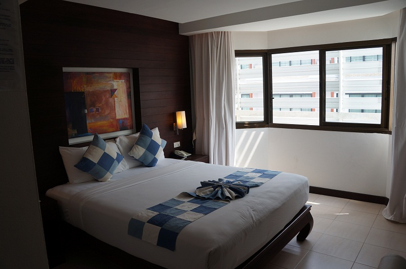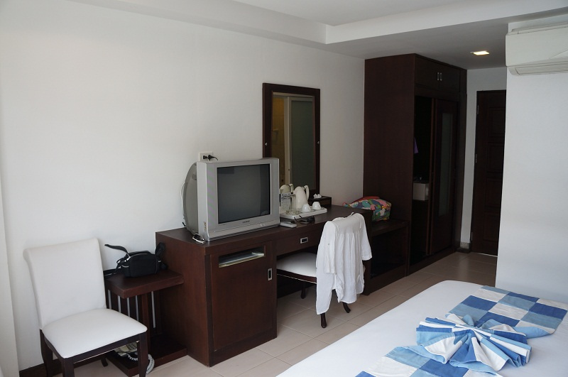 Сам отель довольно новый, техника и мебель вся свежая, в номере есть сейф, холодильник, телевизор, кондиционер.