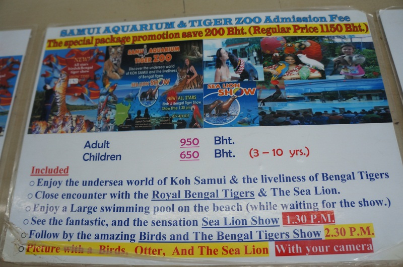 Немного поправлю про шоу в тигрином зоопарке - за эту цену предлагается два шоу, одно началом в 13:30 шоу морских котиков и второе в 14:30 это тигриное, но если вы не успели на первое, то по этим же билетам вас пустят на следующий день на то шоу, которое пропустили.