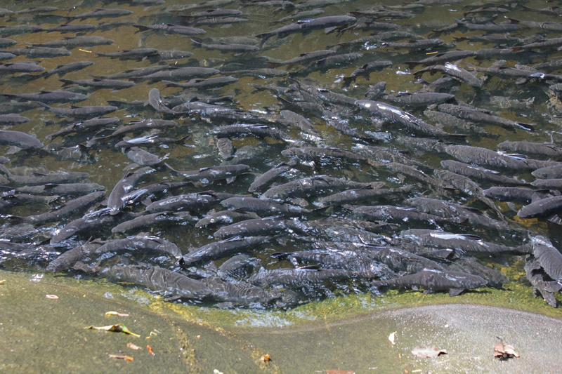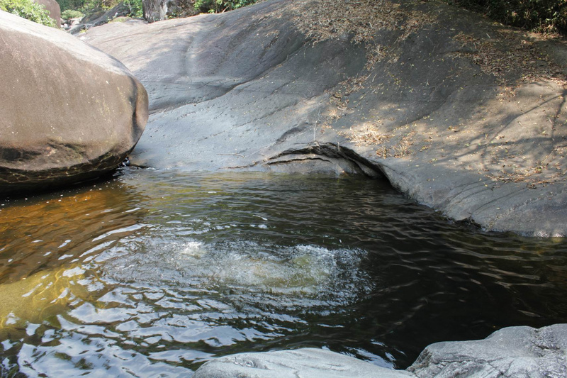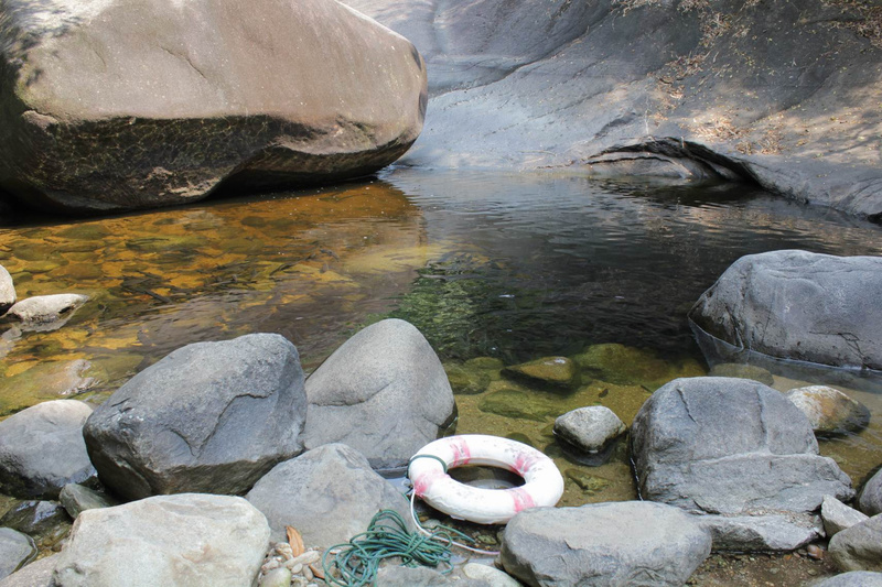 Кое-где вдоль тропы натянуты канатные перила, они здорово помогали при подъёме и особенно при спуске. Почти все водопады образуют при падении небольшие, но глубокие озёра с огромным количеством рыбы - купались, раздвигая рыб руками.