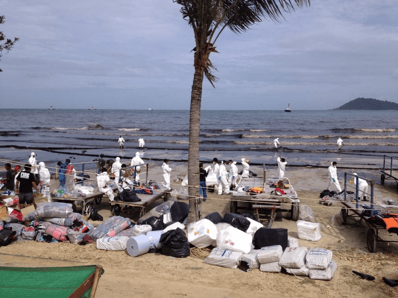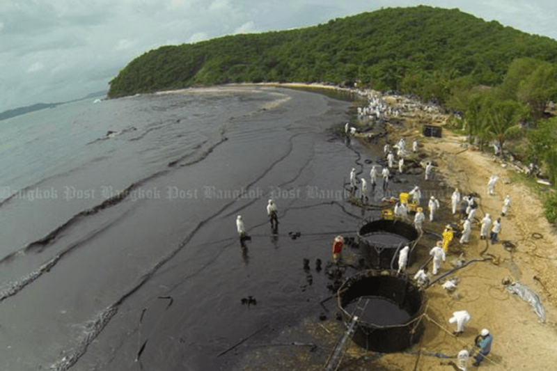 Разлив произошел у провинции Районг в Сиамском заливе. Пятно движется в сторону курортной зоны Мае Ранпуенг.