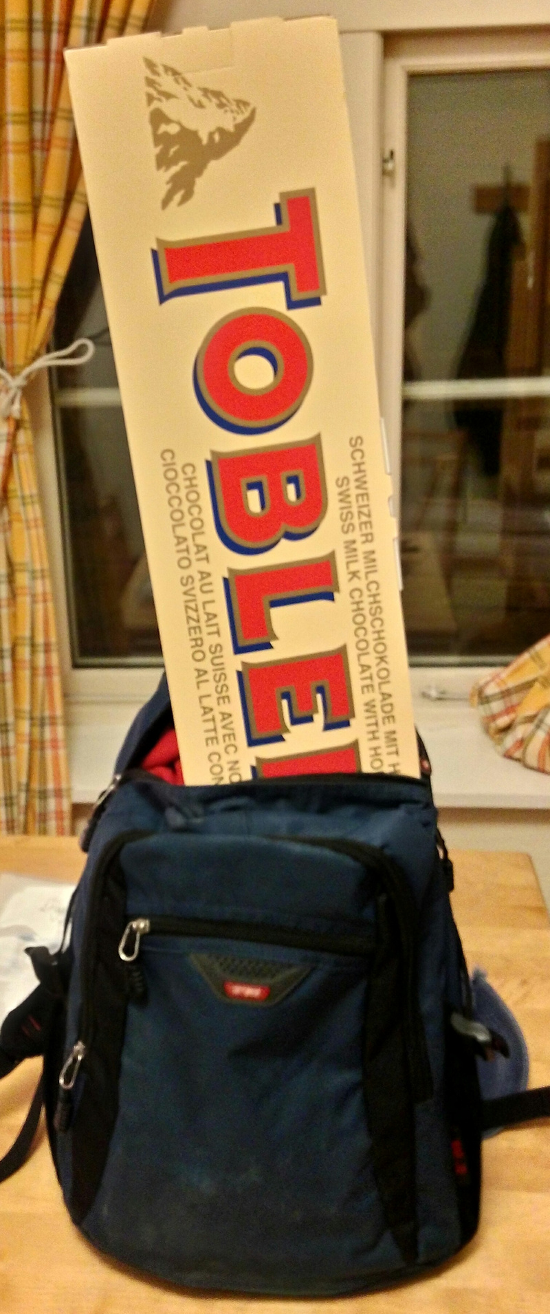 Офигеть! Выиграл два килограмма шоколада Toblerone! Просто поставил 5 крон "на просто так" и, мать его, выиграл! Горю моему нет предела! Ведь этот шоколад выглядит как треугольная картонная коробка со сторонами по 15 см и 60-70 см длиной! Как мне его тащить по всем городам и весям?