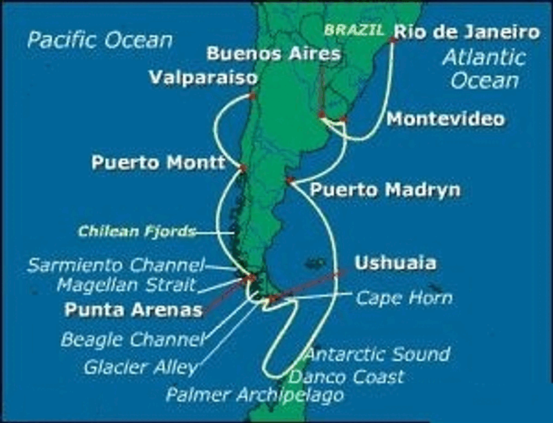 Вы пилот?Так а вы не знаете, как он их считает? Взял этот персонаж круиз из Рио де Жанейро в Сантьяго. Примерно как на приложенной картинке (но не точно). Считаем: