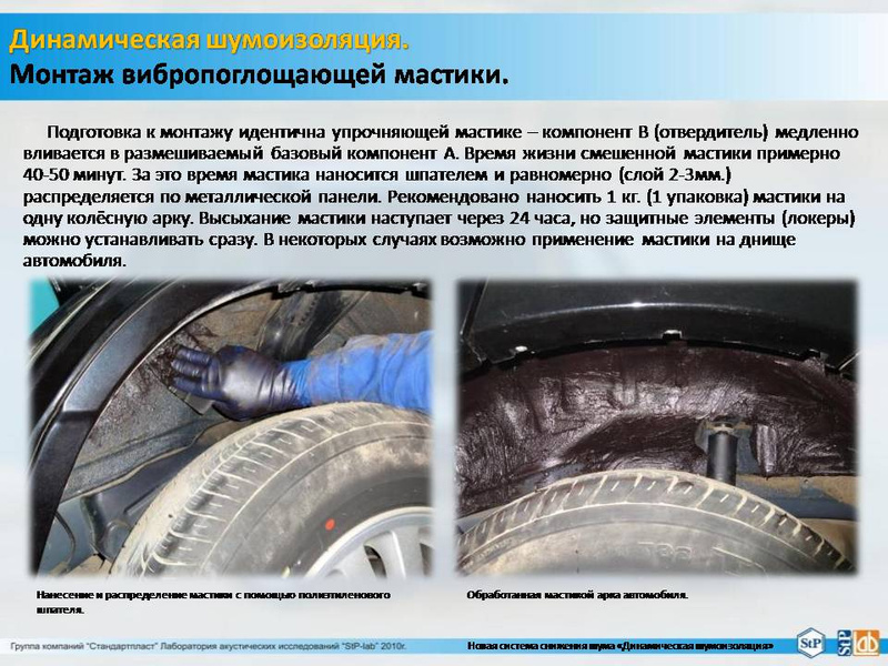 Шум от дороги лучше всего убрать нанесением мастики двухкомпонентной вибродемпфирующей "NoiseLiquidator". На один автомобиль необходимо 4 кг (одну упаковку).