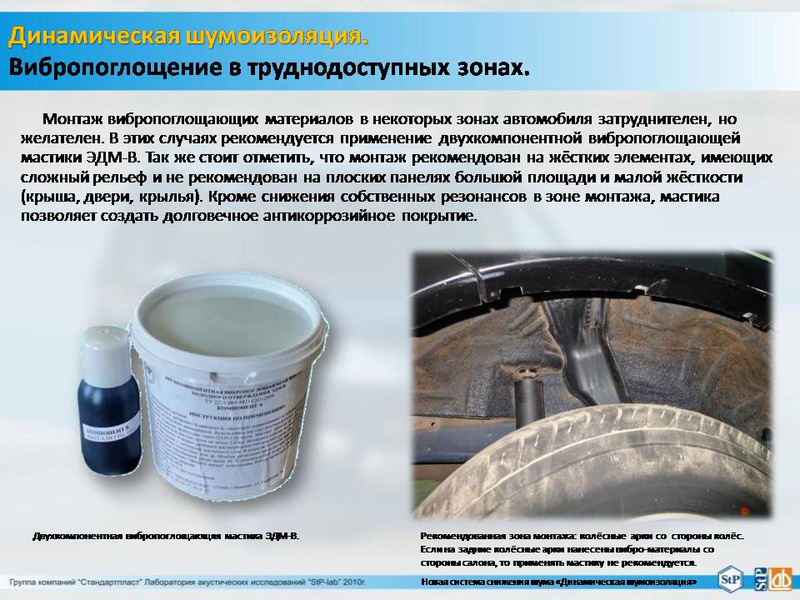 согласен, не зря ведь называется шумо- вибро- тепло- изоляцией. что подрузомевает под собой различные материалы для нанесения на разные поверхности. да и без необходимого инструмента и навыка толкового результата не будет...