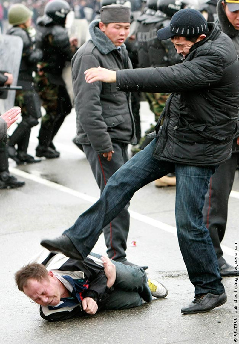 Погромы и мародерство продолжаются во всем Бишкеке. Разгромлены множество магазинов, супермаркетов, торговых центров и рынков. Охрана и добровольцы пытаются оказать сопротивление мятежникам, но в большинстве случаев - безуспешно.