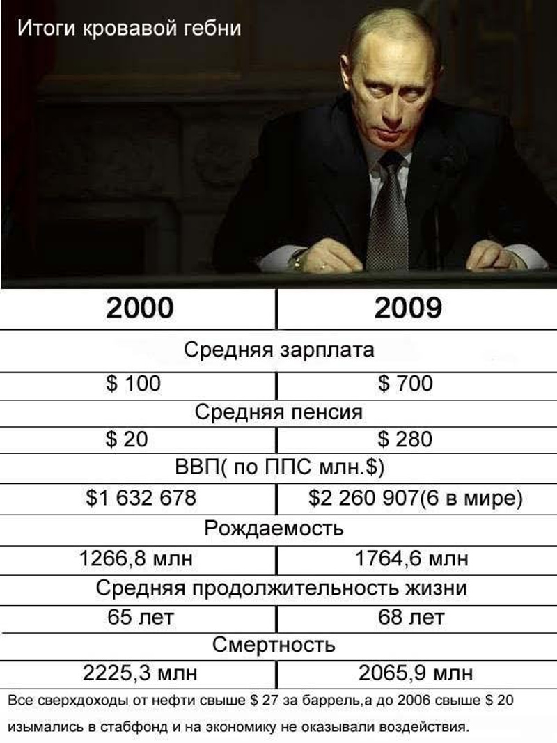так что не надо - ля-ля. Да не плохо бы еще присовокупить стоимость услуг ЖКХ в 2000 и 2010 годах. А так же личное состояние путинаи все возможных Роттенбергов и Тимченко. Продолжить список?Ответ на сообщение Re: Неизвестный Путен..... пользователя elephant
