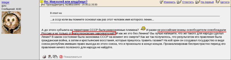 В ответ на: ...а ссср коли вы помните основал как раз этот человек имя которого ленин...