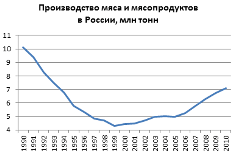 А что в СССР было большое поголовье - так мясо из него выходило чуть больше чем сейчас (1970-1975 г) .