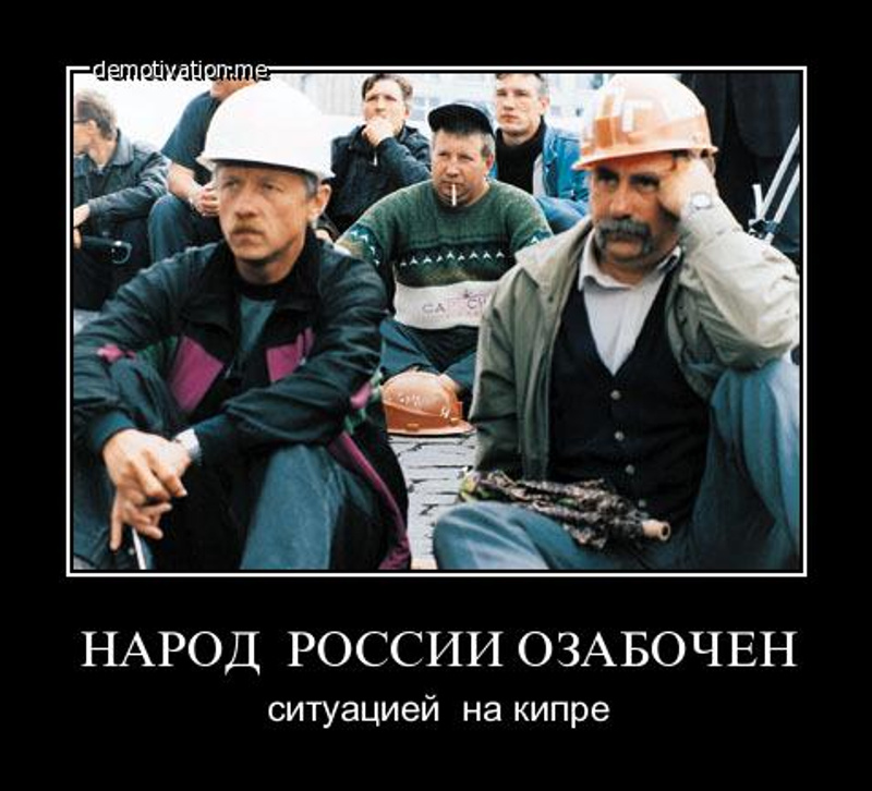 Т.е. вам жалко тех, кто имеет там вклады свыше 100 млн.баксов? (именно для них предполагался "налог" в 12%).У них всё нормально: вывезли 6 миллиардов за февраль (это по официальным оценкам, а все знают, что такое "официальные оценки"), кипры никого не пугают.