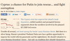 В Кипре говорят о "плане Б", который видимо заключается в том, что одна из заинтересованных стран подарит Кипру 6 млрд. евро., "от души"Буквально через пару часов подтверждение. "наживку закинули". Ждём-с-с-с мощную "поклёвку, подсечку и выволакивание "добычи".