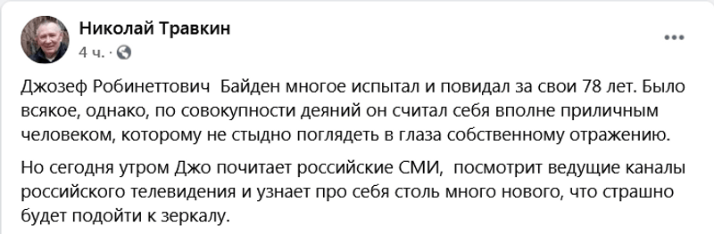 Старческая деменция предпочтительней, видимо, в случае с Байденом.