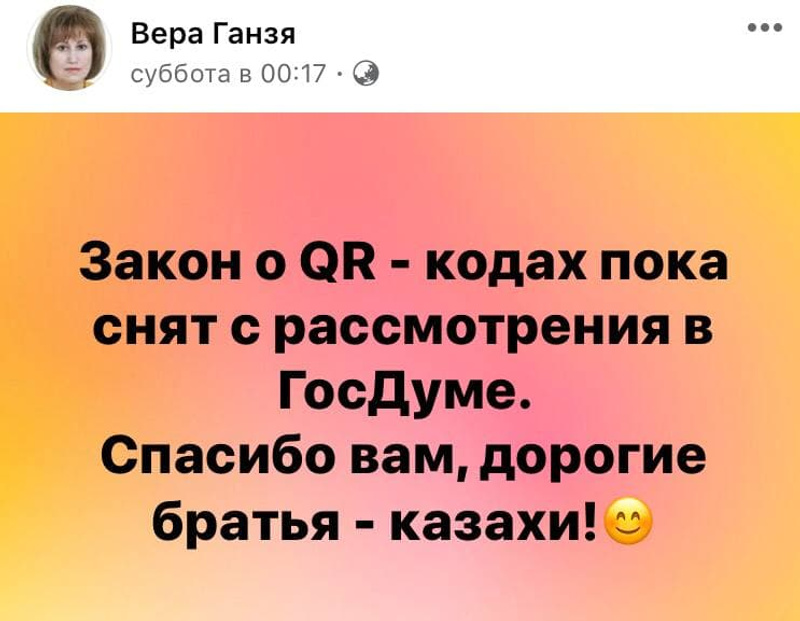 В ответ на: «Спасибо, братья казахи»: экс-депутат Госдумы от Новосибирской и Томской областей Вера Ганзя комментирует снятие с рассмотрения в Госдуме законопроекта о qr-кодах[/i][/i]