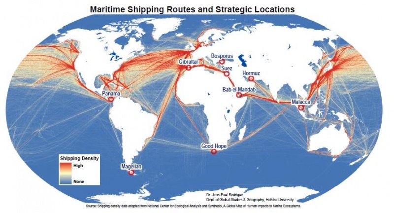 У Вас прям во всем мир статичен, и какой был вчера, такой будет через 100 лет. Снизу карта, как плавают кораблики. А за одним, как могут плавать. Ваше традиционное "как сейчас", это частично через Малаккский пролив. А как только его блокируют, так будут по всем остальным маршрутам. Нижние "ниточки" просто потолстеют. В итоге будет пук в лужу. Единственное место где можно блокировать... хорошо видать на карте.